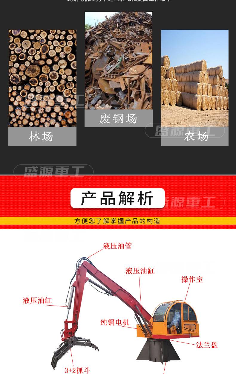 底座旋转固定抓木机 大型废铁抓钢机 电动农用伸缩抓草机 液压抓料机